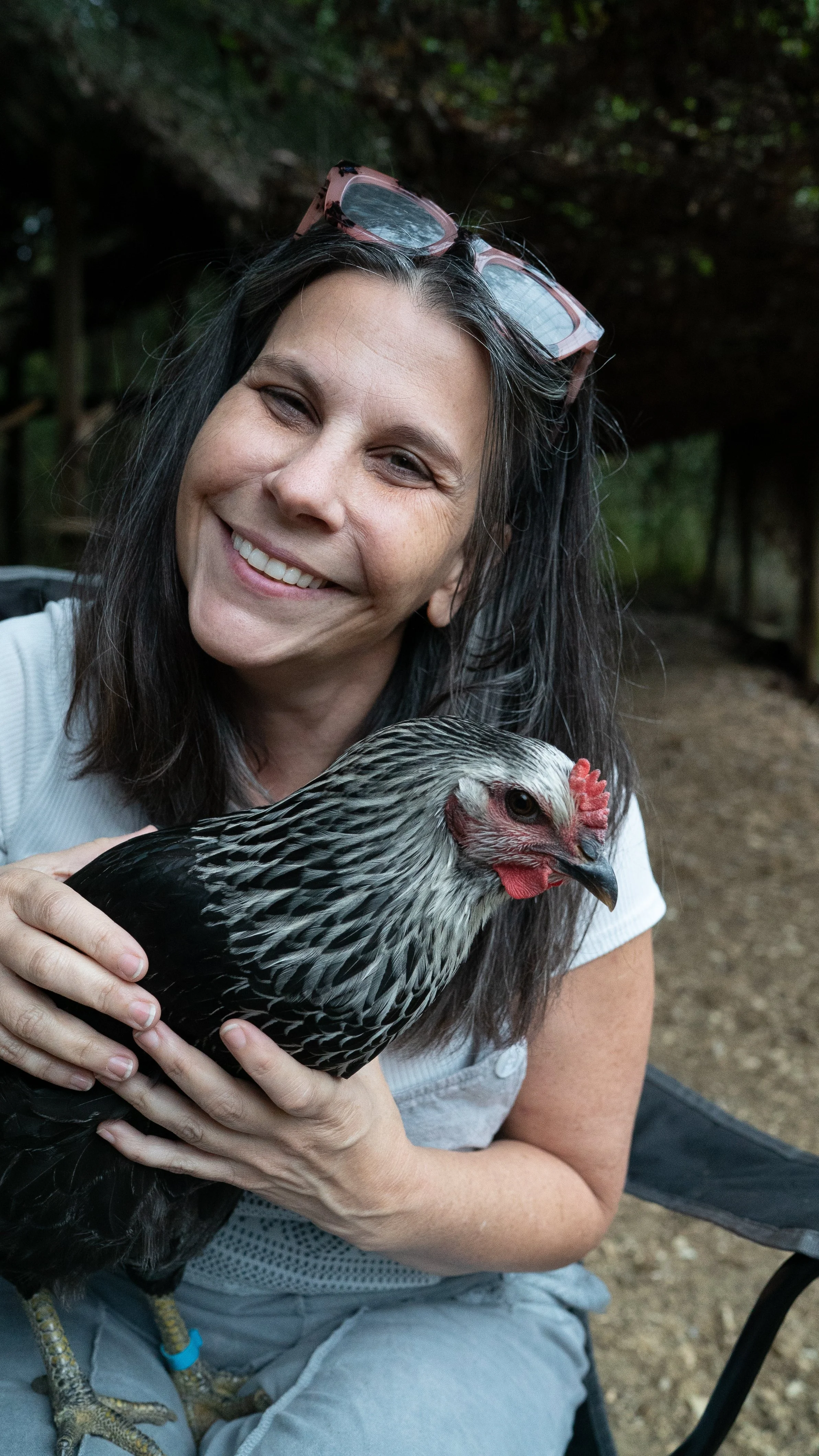 You might find Jenn offering tea ceremonies on the breezy screened porch overlooking the trees… or down in the chicken coop, laughing and handing treats to the beloved flock (yes, you’ll meet Batman, FeFe, Sesame, Todd Pecker, Red, Harley, FloJo, Udaho, Octavia, J.S. Bach, Truddles, Goatski, Pee Wee, Houdini, Bubby, and Sweetums).